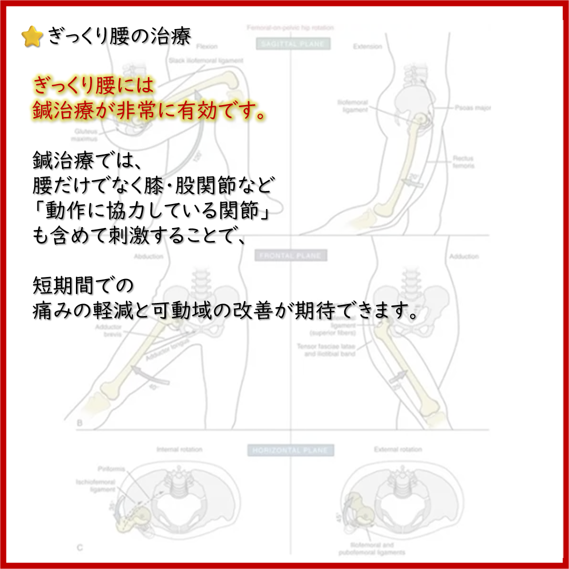 ぎっくり腰には鍼治療が非常に有効です。